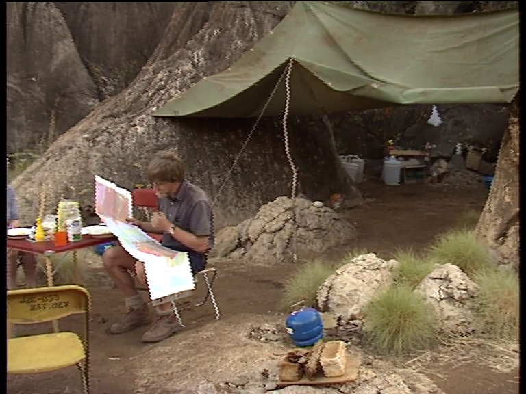 Item 234 - [Gogo Formation in the Kimberley region of Western Australia] Friday # 1. Contents. 1. Breakfast at campsite -- 2. L/S camp -- 3. Rock above tent -- 4. McWays Ridge .. etc