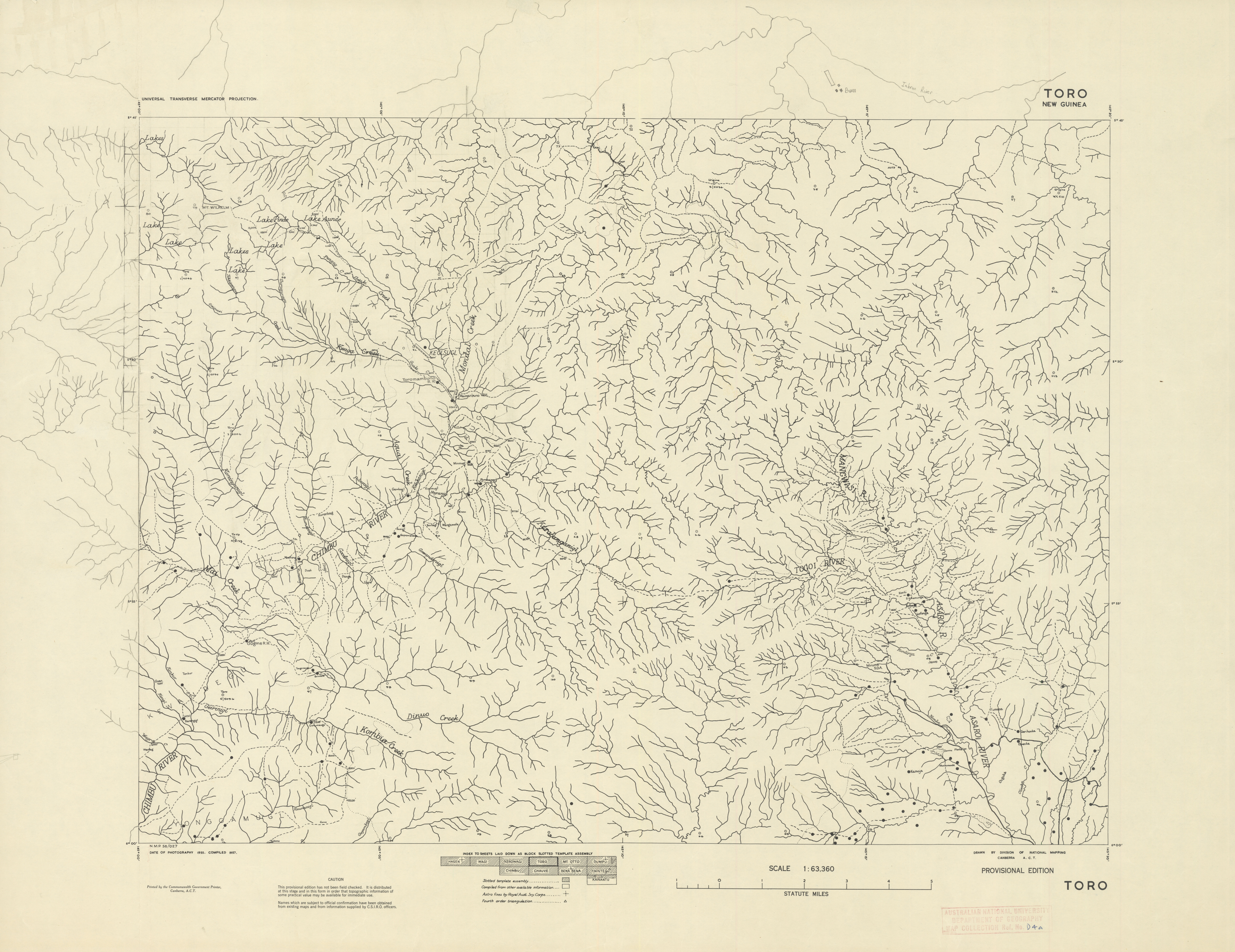 Papua New Guinea, Toro, Provisional map, Sheet B55/5, 3616, 1943, 1:63 360
