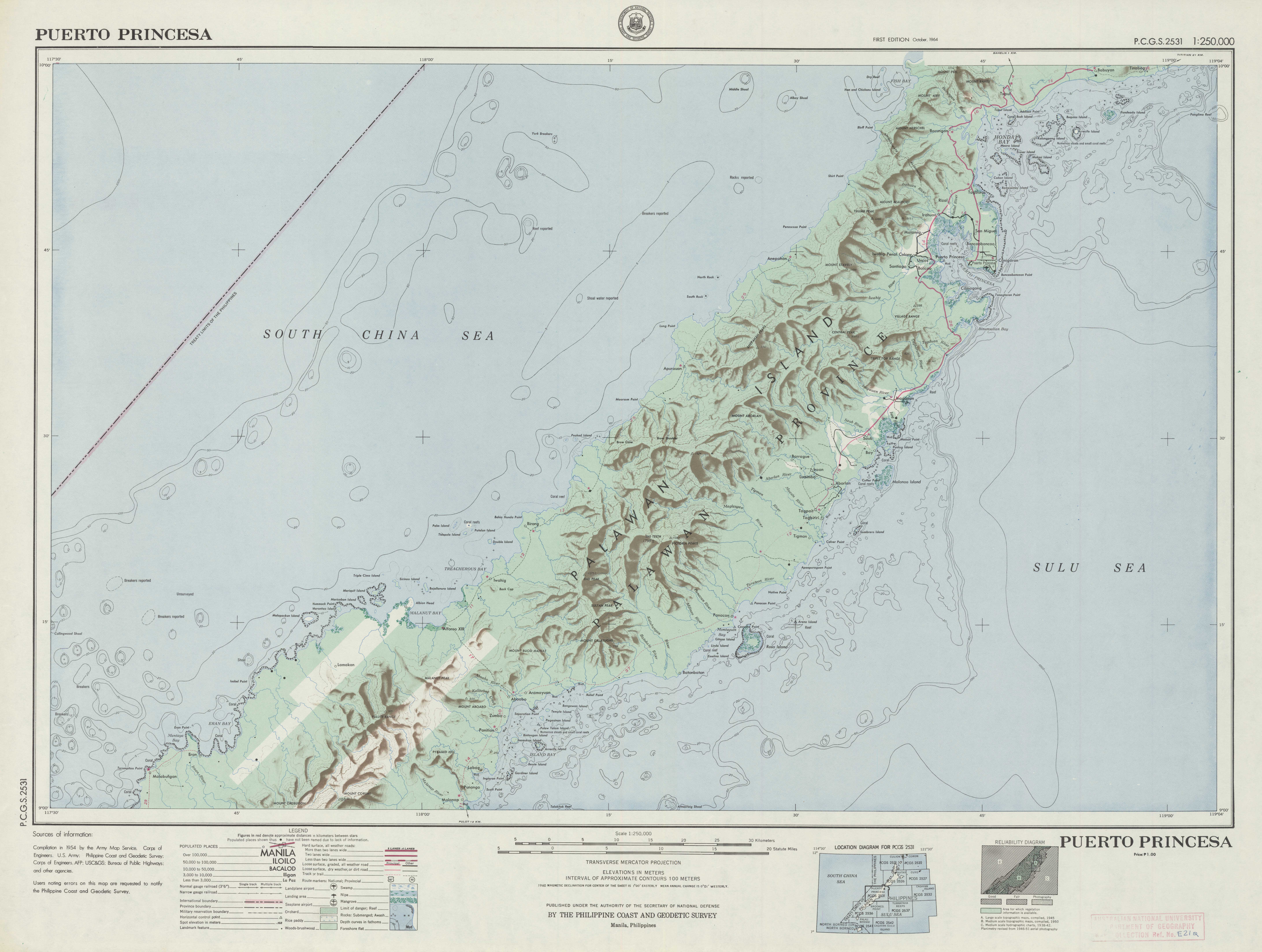 Philippines, Palawan, Puerto Princesa, PCGS Series, Sheet 2531, 1964, 1:250 000